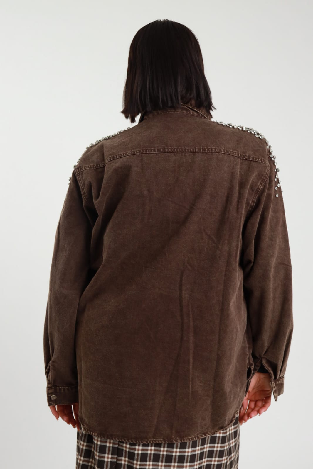 Camicia in Denim con Strass, 2 Tasche Applicate sul Fronte - Linea Curvy Susy Star.