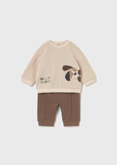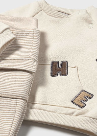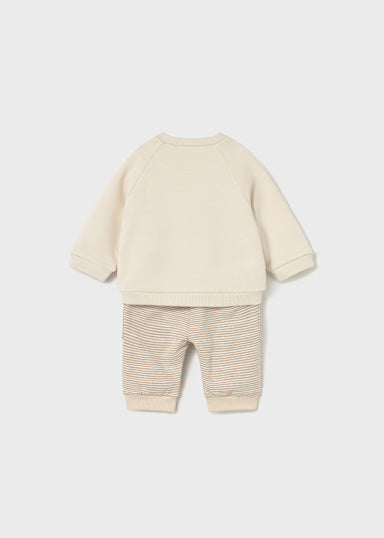 Set 4 pezzi per neonato costituito da 2 completi di felpa e pantalone lungo abbinabili.