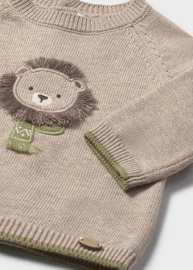 Maglione manica lunga per neonato. Girocollo. Chiusura con bottoni a pressione sulla spalla che facilitano la vestibilità del capo. Elementi decorativi: ricami