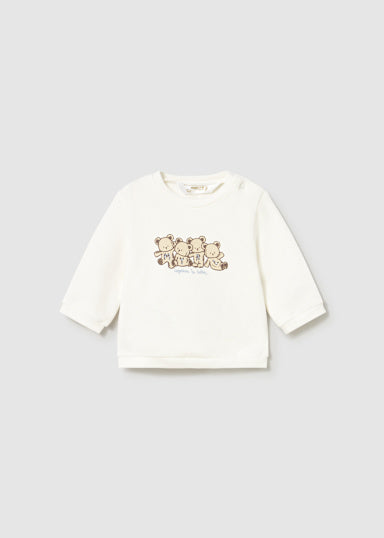 Felpa manica lunga per neonata. Girocollo. Chiusura con bottoni nel colletto che facilita la vestibilità del capo. Elementi decorativi: ricamo