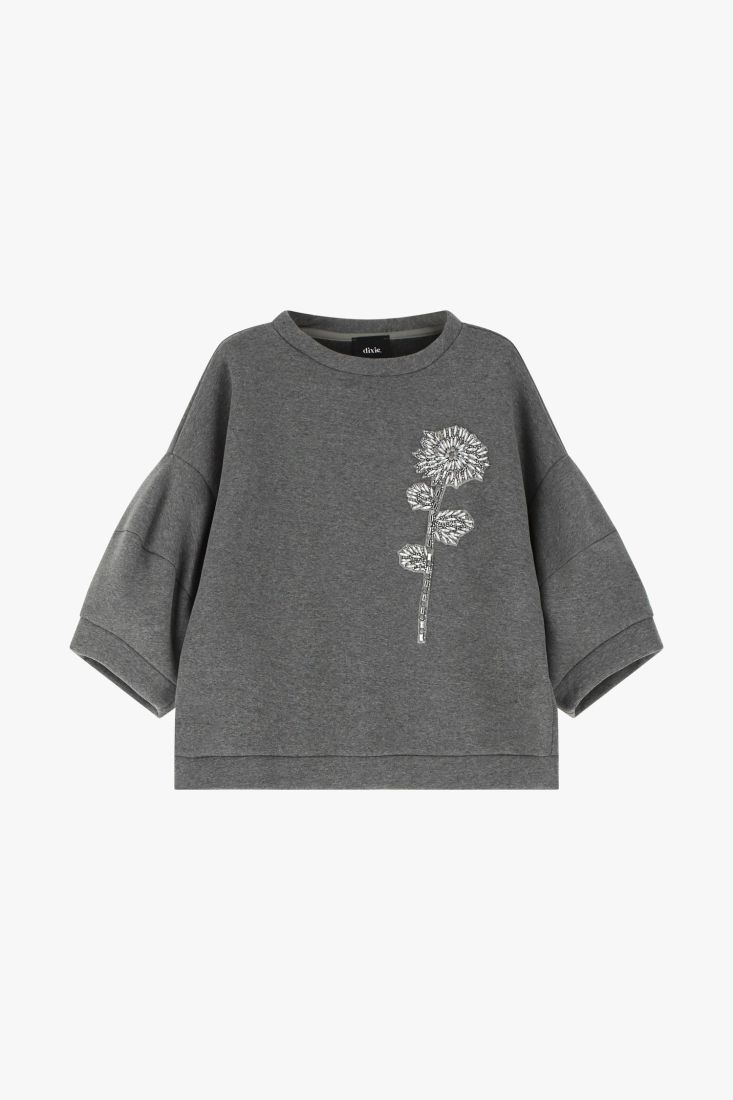 Felpa con maniche 3/4 e ricamo floreale Dixie