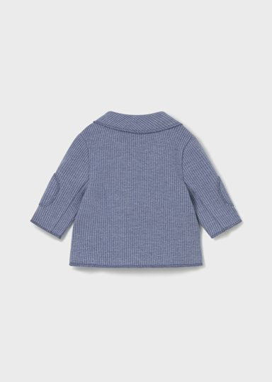 Giacca manica lunga per neonato. Colletto con risvolto. Chiusura con bottoni nella parte anteriore. Tasche funzionali nella parte anteriore. Elementi decorativi: modello con toppe sui gomiti.