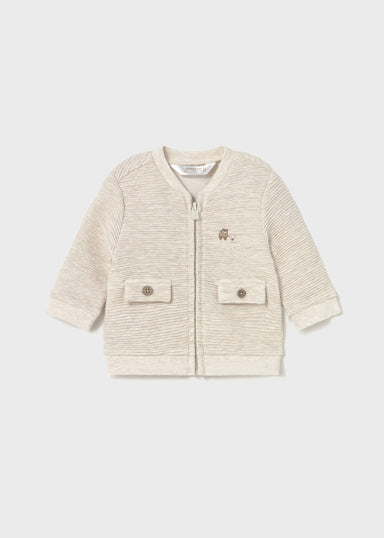 Felpa manica lunga per neonato. Collo bomber. Chiusura centrale con cerniera. Elementi decorativi: tasca decorativa