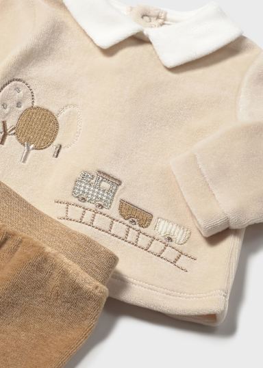 Questo completo per neonato è costituito da maglietta manica lunga con ghettina abbinata.